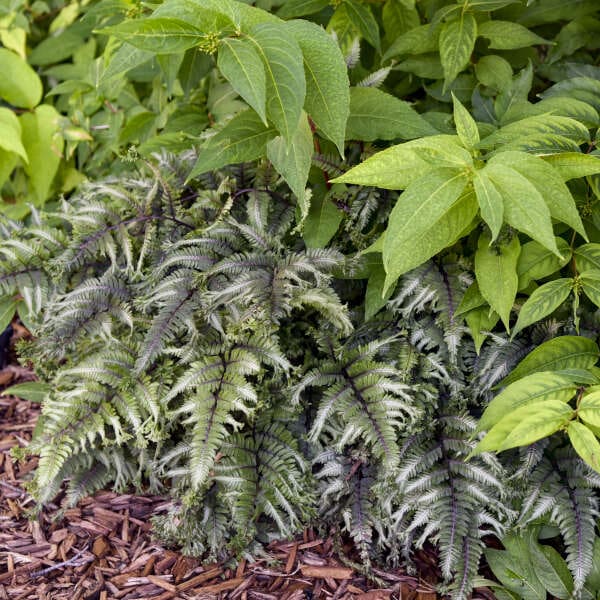 Perennial fern for shade or part shade. Similar in color to a traditional Japanese Painted Fern, but the tips of the fronds are double crested. A vigorous, taller variety that can fit the middle of the border. Perfect for moist, shady areas of the garden.