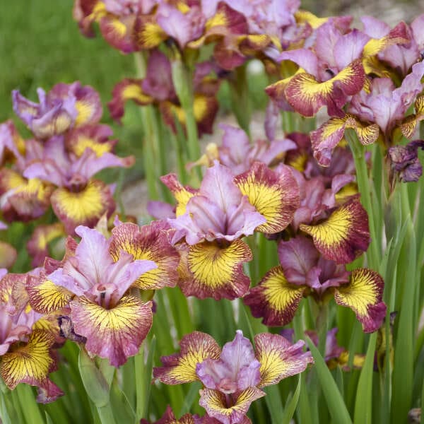 This compact Siberian Iris stands out with its beautiful mauve-rose flowers, accentuated by striking yellow flares and intricate mauve veining. Despite its smaller size of less than 2 feet tall, ‘Fiddles on Fire’ delivers a fiery display that adds a vibrant touch to any garden setting.